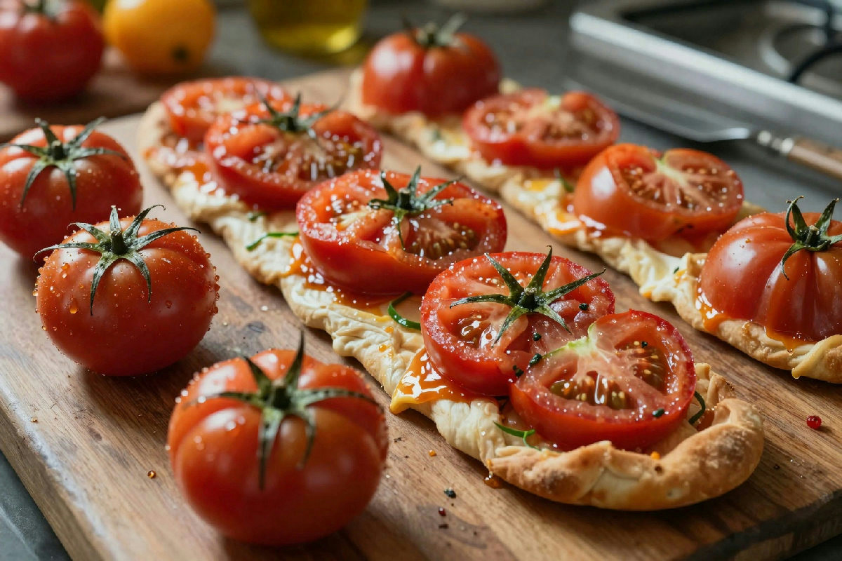 Una volta scelti i pomodori, è tempo di prepararli. Lavali con cura e asciugali delicatamente. Inizia tagliandoli a metà, nel senso della lunghezza, e rimuovi i semi. Questo passaggio è importante: i semi possono rendere i pomodori troppo acquosi durante la cottura e compromettere la consistenza finale. Se utilizzi pomodorini, è sufficiente tagliarli a metà.